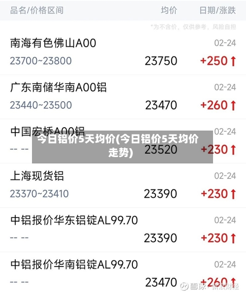 今日铝价5天均价(今日铝价5天均价走势)